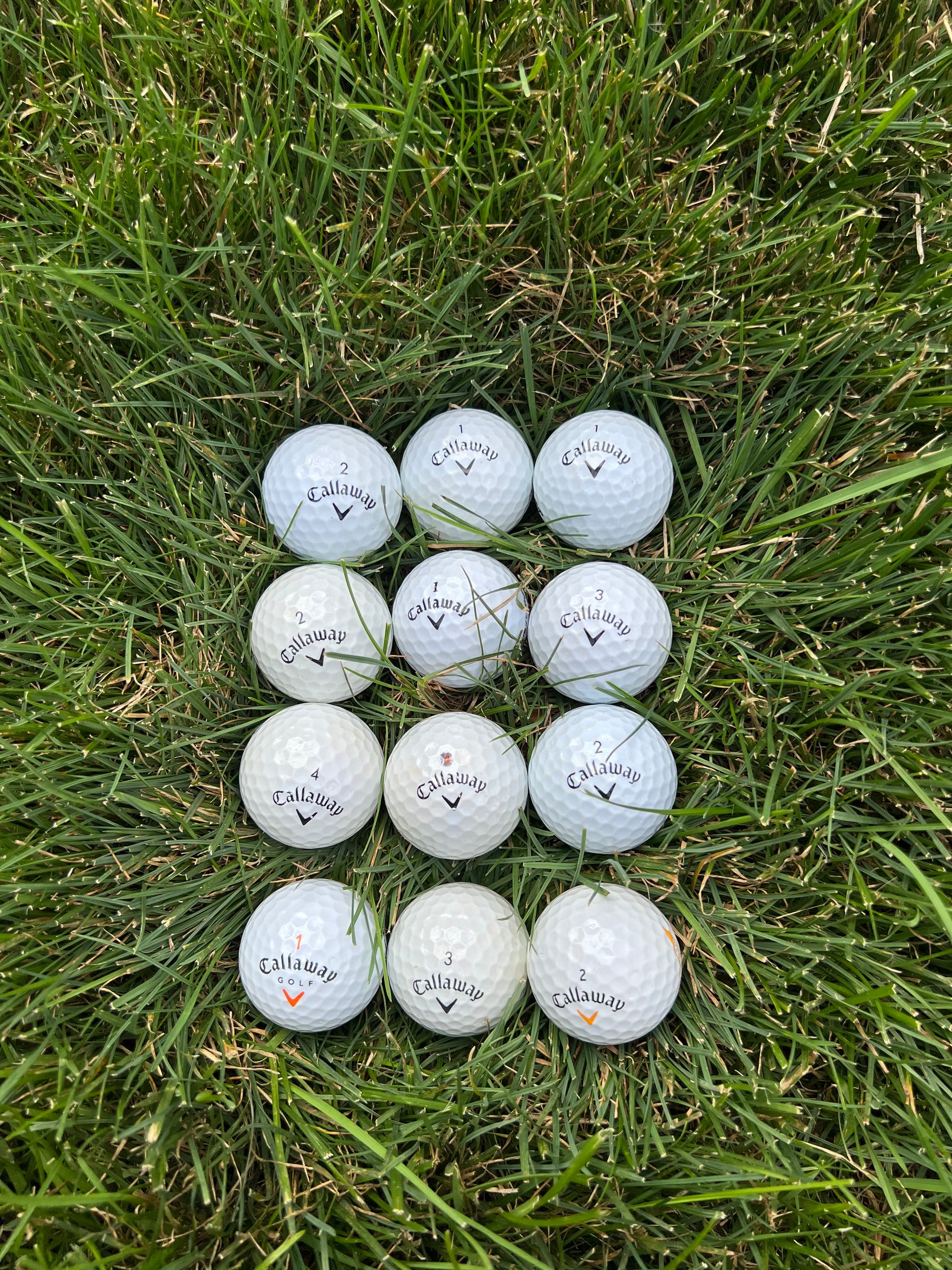 This is a pack of 12 lightly used Callaway golf balls. They have been cleaned thoroughly. These premium golf balls perform similar to brand new ones.